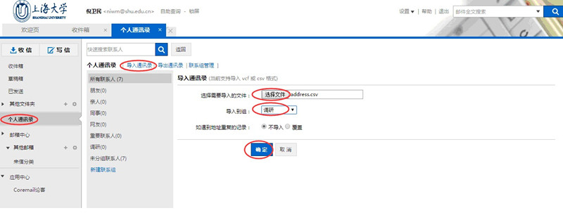 再点击个人通讯录,导入通讯录,选择从快客邮件导出的文件作为导入文件,选择要导入到的组,点击确定后即完成通讯录从快客邮件系统到Coremail邮件系统的迁移。