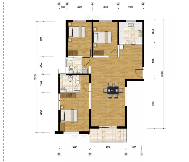 客厅配置:餐桌、餐椅、沙发、冰箱;