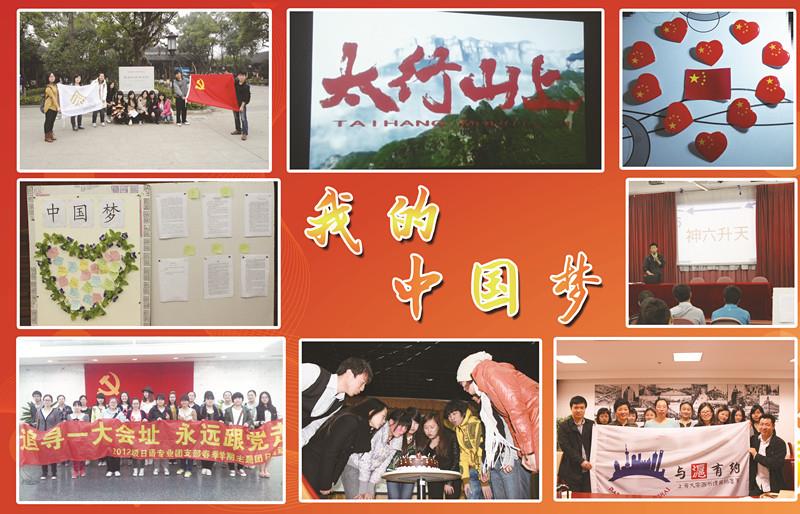 上大学子的梦想打动人心、温暖人心、激励人心,无论是机自学院的机自之星、材料学院的材料之星、理学院的五星评选颁奖,还是文学院的校园女生选拔、中欧学院的中法文化节等都为广大同学实践梦想提供了舞台。悉商学院开通了“我的中国梦”微博征集,引导同学们利用微博记录下自己实践梦想的感悟,并通过微博的传播、分享,激发更多的同学思考自己的梦想,并将个人梦想的实现与中国梦的实现紧密联系在一起。计算机学院通过学生会的人人网主页发布即将毕业的学长学姐对学弟学妹们的鼓励和期望,告诉学弟学妹不论何时都要怀揣梦想,并且要把一代一代人的梦想坚持不懈地传递下去。而一些已经毕业的校友也纷纷在网络上与大家分享他们曾经在校园中的成长故事,向在校同学传递正能量。