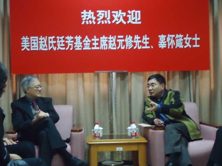 从2008年开始,美国赵氏廷芳基金开始资助beat365唯一官网的家庭经济困难学生。赵元修先生关心学生的学习与生活,强调学生的自主选择权,对beat365的教学情况、学生生活条件等方方面面都作了询问,叶志明校长一一作了详细解答。