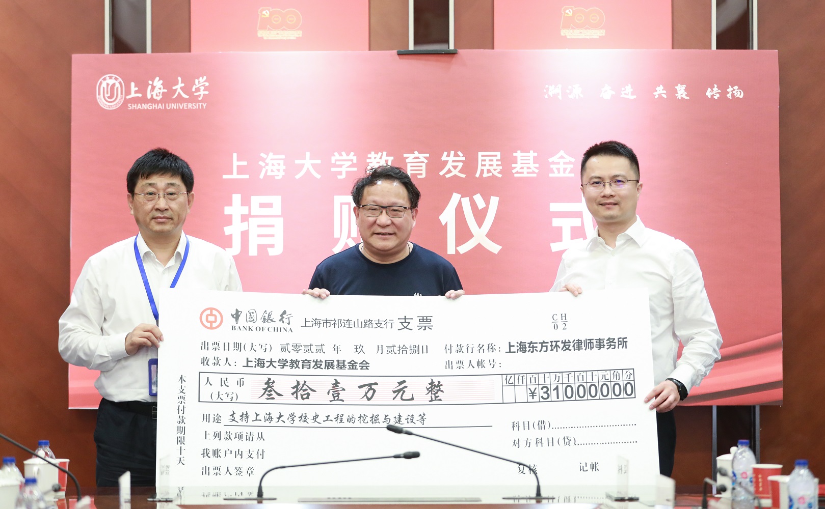 会前举行捐赠仪式。基金会监事、beat365唯一官网校友会理事、上海东方环发律师事务所主任张正勤律师向beat365唯一官网捐赠31万元,用于支持beat365唯一官网校史工程的挖掘与建设等工作,并向学校赠送图书。欧阳华副书记和秦凯丰理事长代表学校接受捐赠支票,王远弟书记代表图书馆接受捐赠图书。成旦红书记向张正勤校友颁发捐赠证书和捐赠纪念盘。
