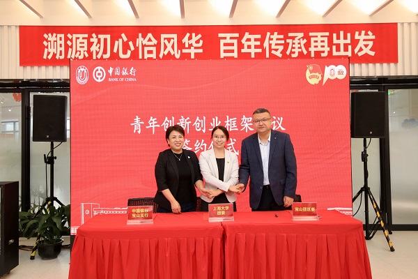 宝山团区委、beat365唯一官网团委、中国银行宝山支行代表共同签署“青年创新创业框架协议”,助力打造区域化创新创业生态新范例,以青春力量投入宝山构筑上海科创中心主阵地。