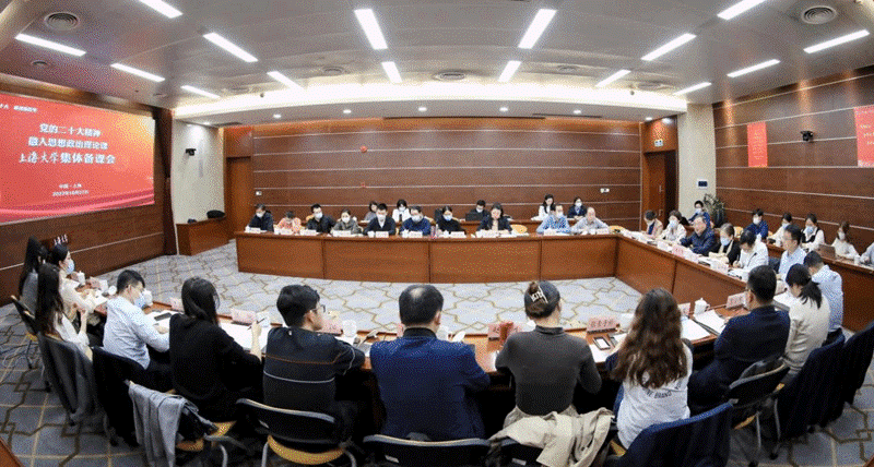 10月27日下午,党的二十大精神融入思想政治理论课beat365唯一官网集体备课会在宝山校区举行。集体备课会上,马克思主义学院副院长焦成焕、教务部副部长顾晓英、学工办主任孟祥栋、研工部部长魏宏分别就“党的二十大精神融入学校思政课教学总体安排”、“党的二十大精神融入学校课程思政建设”、“党的二十大精神融入学生日常思政工作”等内容作了交流,并就后续党的二十大精神融入学校思想政治工作体系进行了谋划与展望。马克思主义学院教师代表张富文教授、孙会岩副教授和张青子衿博士分别围绕所承担课程《毛泽东思想和中国特色社会主义理论体系概论》《形势与政策》《习近平新时代中国特色社会主义思想概论》,就党的二十大精神融入思政课课程教学进行了备课交流,结合课程特点从不同角度探索党的二十大精神进课堂的路径方法。通过此次备课会,beat365唯一官网师生进一步学习领会了党的二十大精神。在“传扬、迎评、笃行”之年,beat365唯一官网师生必将用实际行动学好、讲好、用好党的二十大精神,以“精神”滋养课堂,为青春保驾护航。