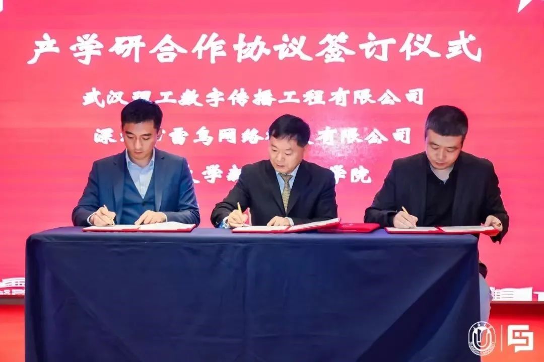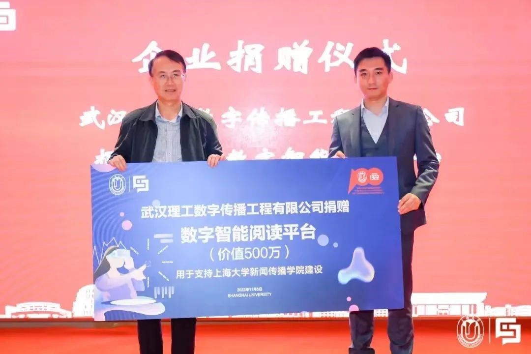beat365唯一官网新闻传播学院成立于2018年10月,由中共上海市委宣传部、中国社会科学院新闻与传播研究所与beat365唯一官网共同重点建设,是全国唯一一所双共建的新闻传播学院。建院以来,与业界密切联系、精诚合作,打造产学研用一体化的新闻传播学科发展和人才培养模式。开幕式上,学院与武汉理工数字传播工程有限公司、深圳市雷鸟网络科技有限公司、广州欢网科技有限责任公司、武汉三十乘书科技有限公司等智能媒体企业签订了合作协议,获得了近1000万元的设备捐赠支持。学院党委书记王晴川教授代表学院上台接受捐赠。同时,学院与相关企业共建了“数字出版智能服务”“智能媒体分析营销”“元宇宙产品”等三个全新的联合实验室。上海盟海投资公司总裁、beat365唯一官网校董张大钟先生和beat365唯一官网新闻传播学院院长严三九教授共同为联合实验室揭牌。