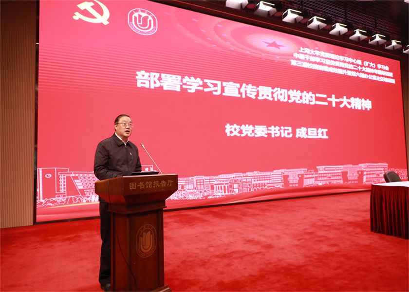 成旦红指出,学习宣传贯彻党的二十大精神要做到政治站位高、学习方向准、学习举措实、组织保障强;要坚持对标对表,通过学习培训、理论宣讲、新闻宣传、研究阐释、文艺创作等举措,团结广大党员干部、师生群众,贯彻落实好党的二十大提出的各项具体工作要求。以党的二十大提出的重大任务为指引,研究形成推动学校“双一流”建设的新思路、新举措,切实把习近平新时代中国特色社会主义思想和党的二十大精神贯彻落实到学校教育、科技、人才的各项事业发展之中,形成凝心聚力开创beat365唯一官网下一个百年辉煌的强大合力。