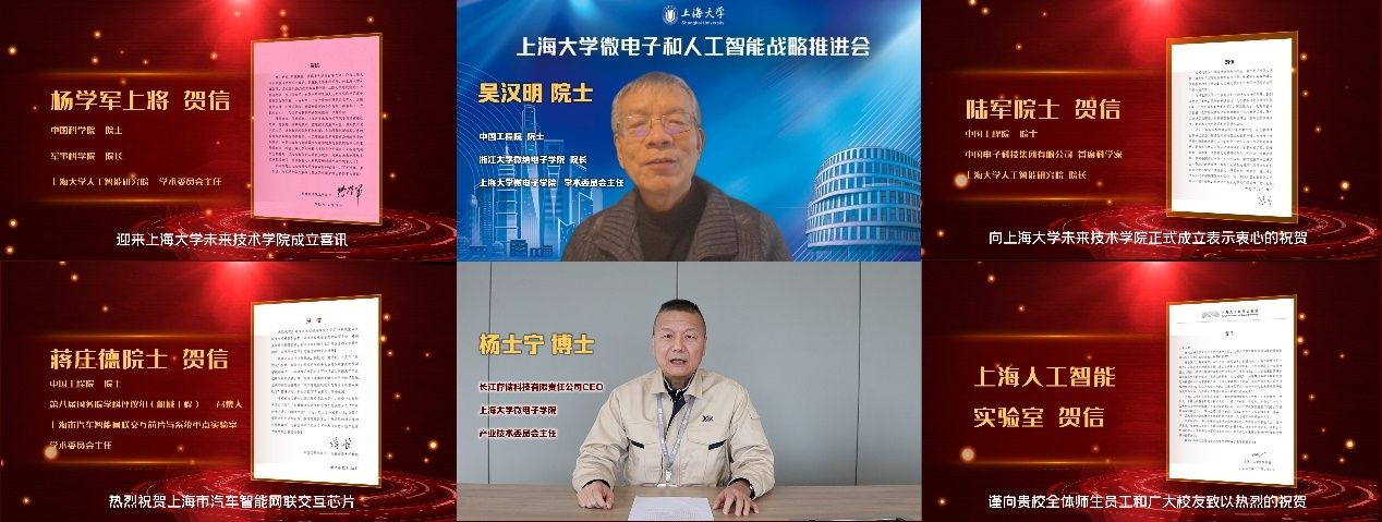 beat365唯一官网微电子学院学术委员会主任吴汉明院士在线致辞。军事科学院上将院长、中国科学院杨学军院士,中国工程院陆军院士,中国工程院蒋庄德院士,长江存储CEO杨士宁博士,以及上海人工智能实验室发来贺信,对三个重要平台的成立致以热烈祝贺,并祝愿百年上大在崭新的征程中做出新的更大贡献!