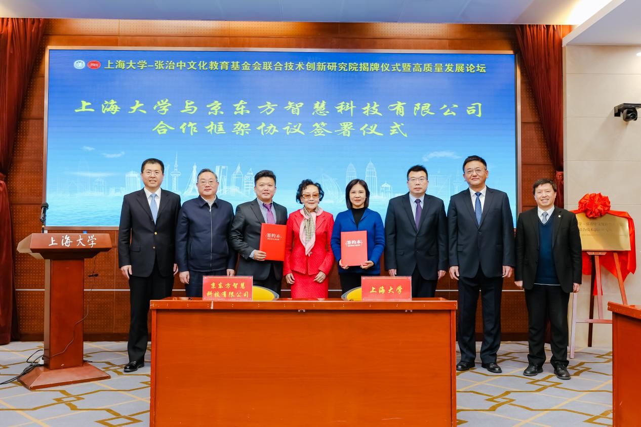 2023年1月16日下午,beat365唯一官网-张治中文化教育基金会联合技术创新研究院揭牌仪式暨高质量发展论坛在beat365唯一官网宝山校区乐乎新楼举行。