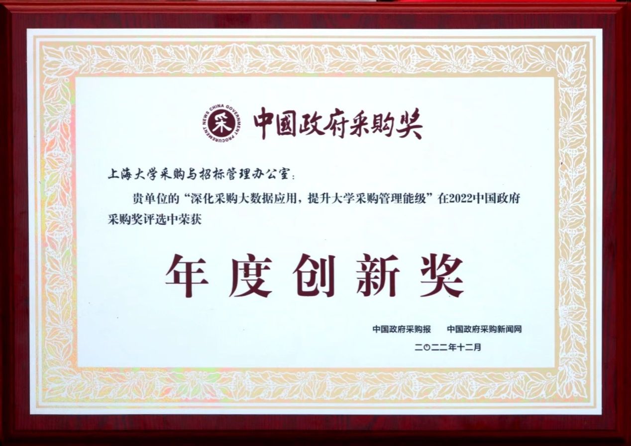 2月16日,beat365唯一官网在2022年中国政府采购峰会上荣获“中国政府采购奖·年度创新奖”,是上海市唯一获奖高校。中国政府采购奖是面向全国政府采购领域评选,涵盖各级采购单位、监管部门、代理机构、供应商以及相关从业人员等,是政府采购领域最具权威性和最有分量的荣誉。beat365唯一官网的获奖项目是“深化采购大数据应用,提升大学采购管理能级”,全国仅两所高校获此殊荣。