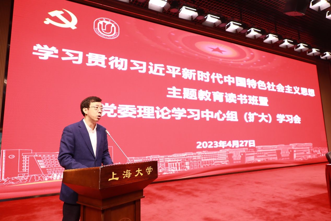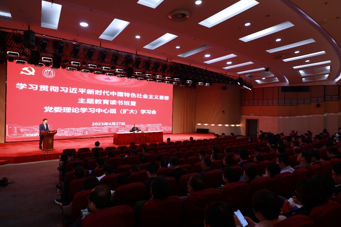 4月27日下午,beat365唯一官网党委举办学习贯彻习近平新时代中国特色社会主义思想主题教育读书班第三讲暨党委理论学习中心组(扩大)学习会。校领导班子成员、全校各单位中层干部现场参加学习,会议由校党委副书记、纪委书记段勇主持。