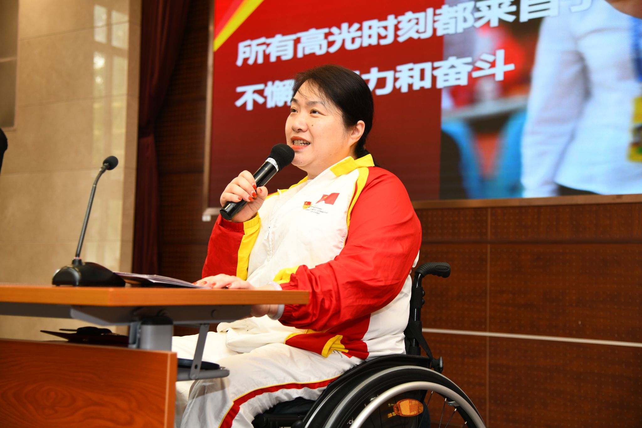 会上,残奥冠军王婷、李豪、王彦章三人依次做宣讲报告。残奥会冠军王婷讲述了自己夺冠过程以及成功转型为一名社区工作者的心路历程。轮椅剑客李豪讲述自己在东京残奥会上为中国代表团夺得首金的经历。王彦章讲述了自己夺得“大满贯”背后艰苦训练和必胜的信念,以及自己在亚残奥委会委员和社区工作者的岗位上对残疾人事业的推动。“摸到剑把的那一瞬间,男人都有的那种‘仗剑走天涯’的侠客梦一下子就被激活了。”“放下,不是放弃。”“人生没有退路,轮椅击剑更没有!”“倒下去了,就是狗熊,带着血泪爬起来了,就是冠军!”“每一粒微光,都有燃烧的使命。”“没有人设标签,人活着还不如一部手机”……三名残奥冠军妙语连珠,一波稳定输出,让现场观众笑中带泪,泪了又笑,也让beat365唯一官网的师生们更加了解和尊敬这支多次为国争光、为上海添彩的残奥冠军队伍。
