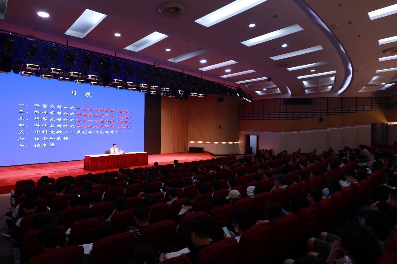 林宝军总师以“爱国、创新、协同、求实”的科学家精神为主线,从“一片冰心在报国”“创新敢为天下先”“万众一心谋跨越”“集智攻关无不成”四个方面介绍了北斗三号卫星的研制过程,并分享了他做人做事的感悟。他首先介绍了北斗导航系统应用的一系列创新技术,并强调,技术创新固然重要,但理念创新、观念创新更为重要,跟着别人用传统的技术很难跨越,只有敢于创新、大胆创新才能突破瓶颈难题。