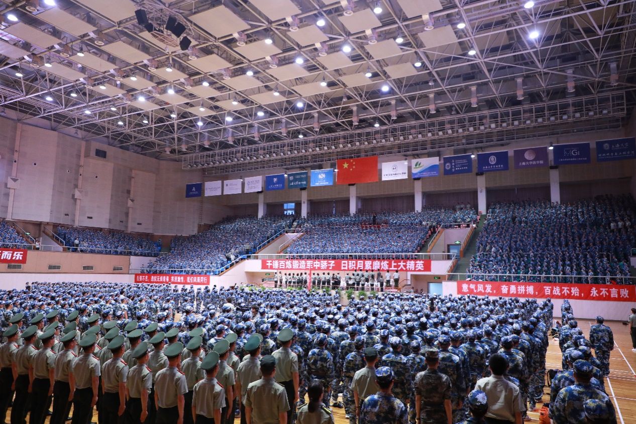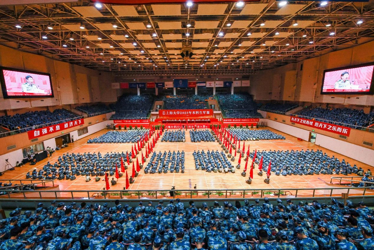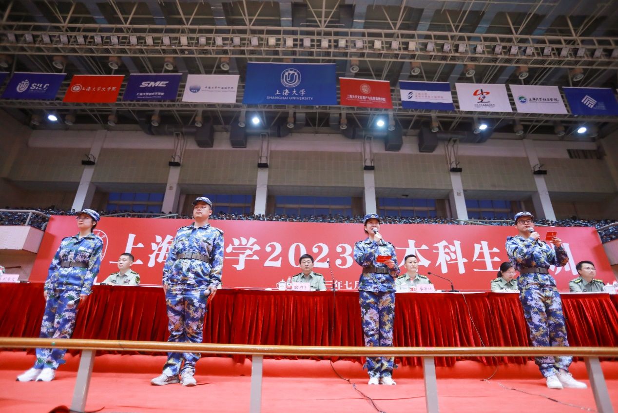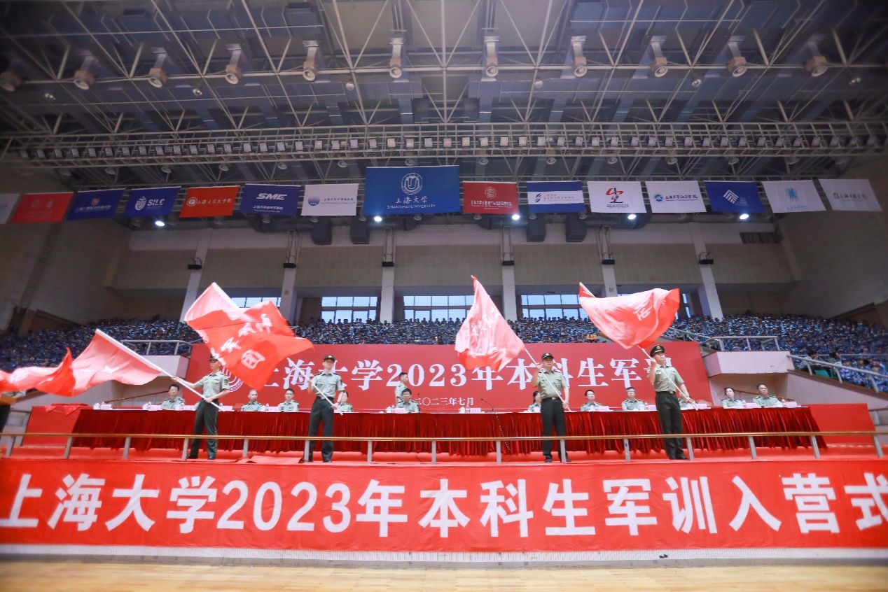 7月7日晚7点,beat365唯一官网2023年本科生军训主干部队入营仪式在宝山校区体育馆举行。