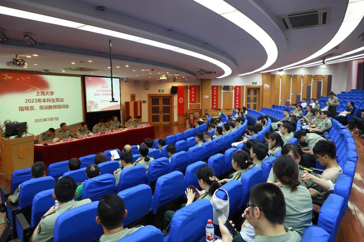 军训入营仪式意味着为期十四天的军训正式开始。本年度军训是2021级和2022级两届本科生共同参加的万人军训,将在宝山校区与嘉定校区同步举行。为保障本年度军训工作顺利进行,校长办公会进行专题审议,军训师召开专题工作部署会,并开展带训青年教师培训会、导生培训会、带训人员培训会、军训动员会等工作;同时延续往年的优良传统邀请71名青年教师一起加入由85名辅导员和24名院系分管领导组成的指战员队伍。78名退役复学的大学生担任带训教官,成为了本次军训一道靓丽的风景线。后勤保障部等全校各部处也提前做好相关准备,全力保障军训工作。