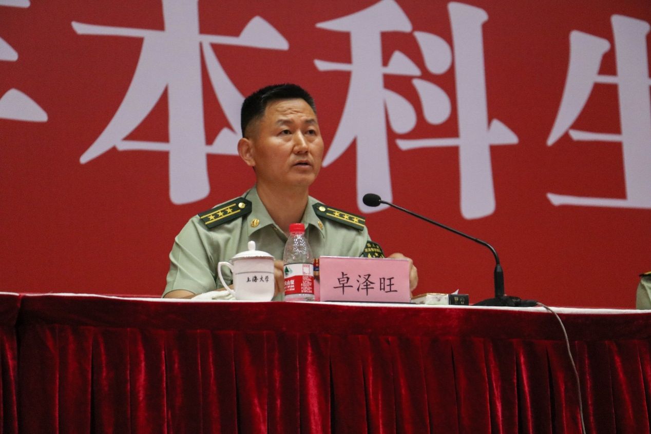 卓泽旺发表讲话。他缅怀过去、致敬先烈,同时对beat365唯一官网细致的对接工作和学员们的支持表示感谢,并对同学们提出三点希望:第一,希望同学们勇担时代使命,“自强不息”,拿出“君子”“达人”的风范;第二,希望同学们不惧梅雨酷暑,通过十四天军训百炼成钢,受益终身;第三,希望同学们奋斗青春,迸发青春的能量,发出青春最强音。