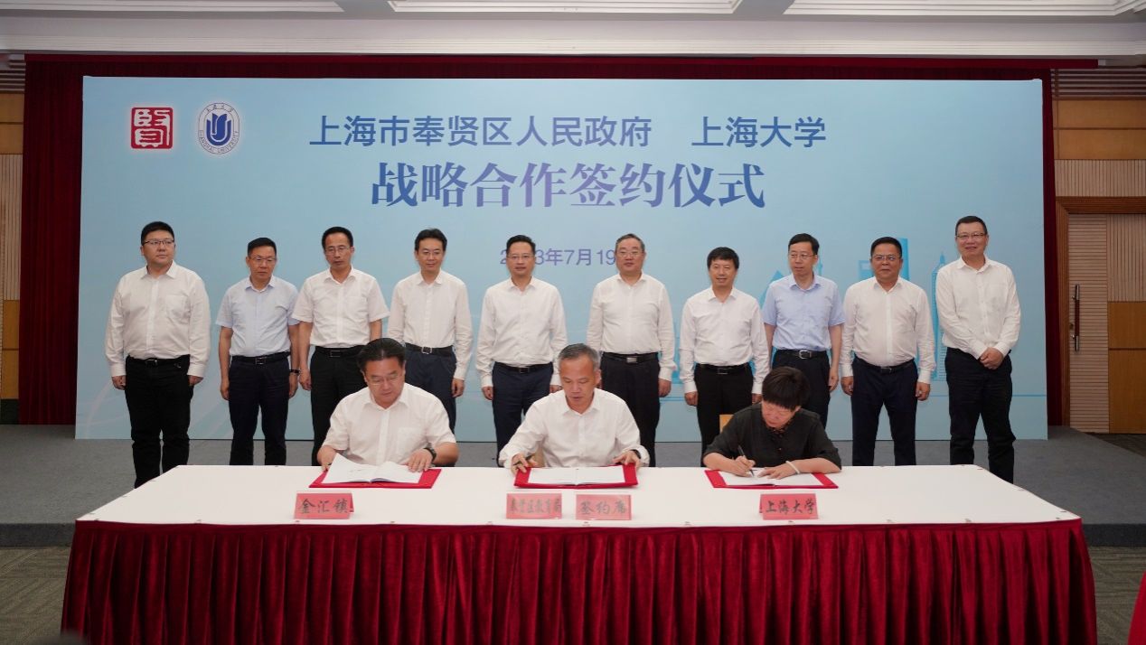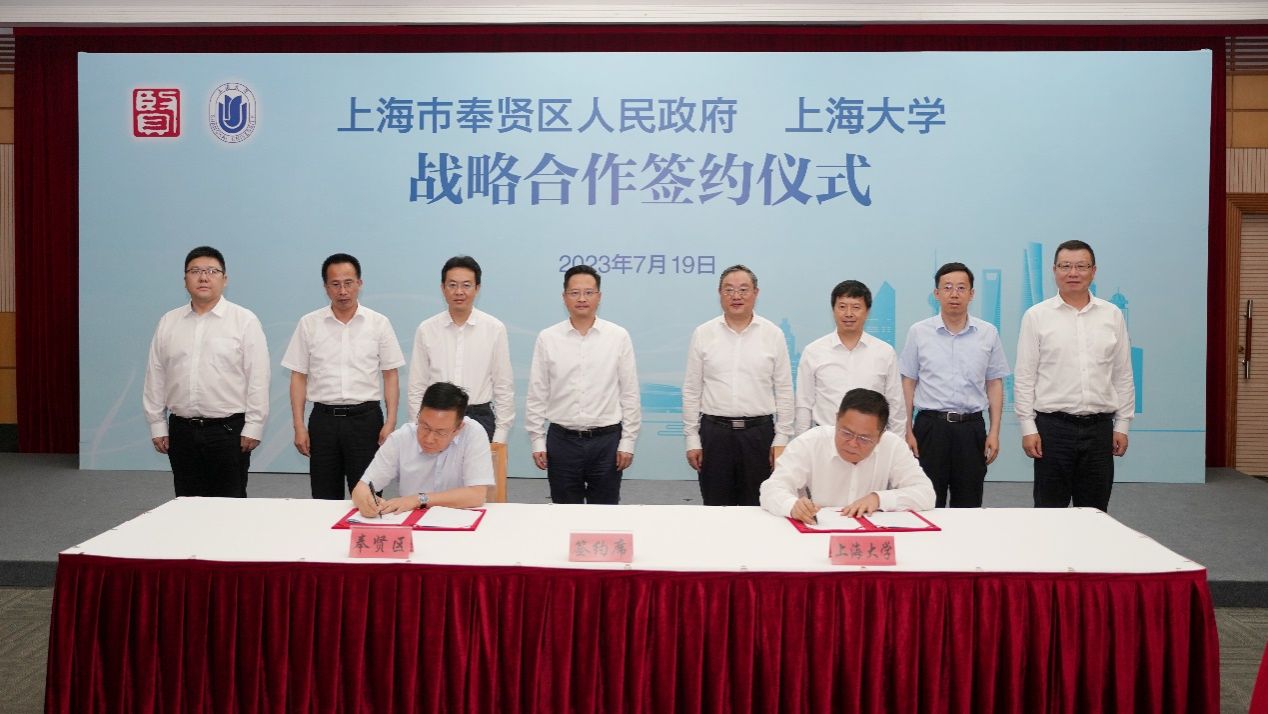7月19日下午,beat365唯一官网与上海市奉贤区人民政府正式签署战略合作框架协议,双方将充分发挥各自优势,秉持“优势互补、互惠互利、讲求实效、共同发展”原则,就产学研合作、人才培养、社会发展、乡村振兴等领域开展全面战略合作,携手开启区校合作新篇章。beat365唯一官网党委书记成旦红,党委副书记、校长刘昌胜,党委副书记、纪委书记段勇,党委常委、副校长王从春,副校长汪小帆,奉贤区委书记袁泉,区委副书记、代理区长王益群,区委副书记唐晓腾,区委常委、常务副区长顾耀明,副区长王淳出席签约仪式。