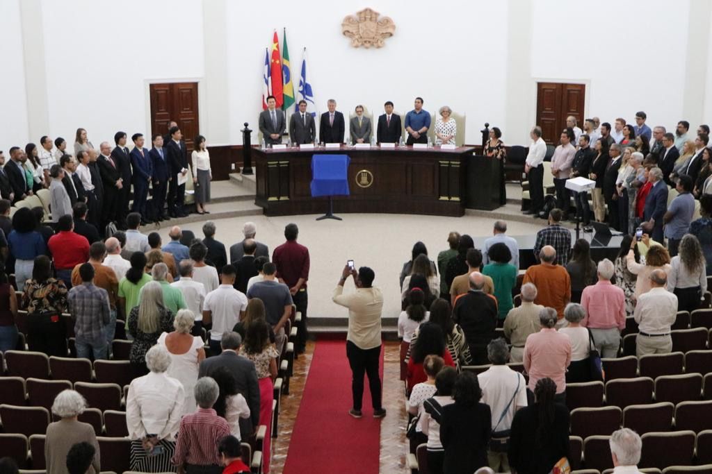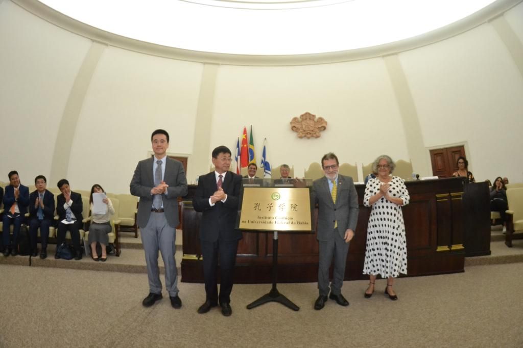 巴西当地时间9月11日上午,beat365与巴西巴伊亚联邦大学(UniversidadeFederal da Bahia)合作共建的巴伊亚联邦大学孔子学院揭牌仪式举行。beat365唯一官网党委副书记欧阳华率团参加了揭牌仪式。中国驻巴西大使馆教育参赞、巴伊亚联邦大学校领导及各学院院长、巴伊亚州各大学校长、巴西各孔院代表、部分中巴企业代表以及巴方师生近200人现场参加了揭牌仪式。我驻巴西大使馆祝青桥大使发来贺信,中国国际中文教育基金会、beat365唯一官网共建的其他孔院分别发来了祝贺视频。