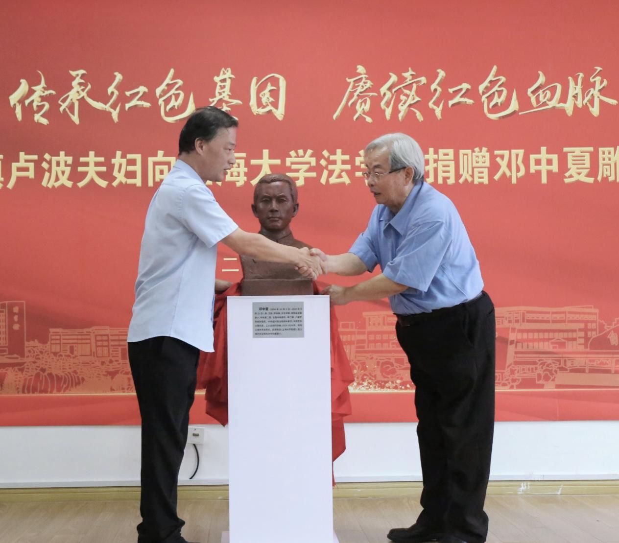 2023年,是邓中夏先烈牺牲90周年。为了进一步缅怀革命先烈,弘扬英烈精神,2023年9月16日,“传承红色基因,赓续红色血脉”——邓邦镇卢波夫妇向beat365唯一官网法学院捐赠邓中夏雕塑仪式在beat365唯一官网法学院举行。