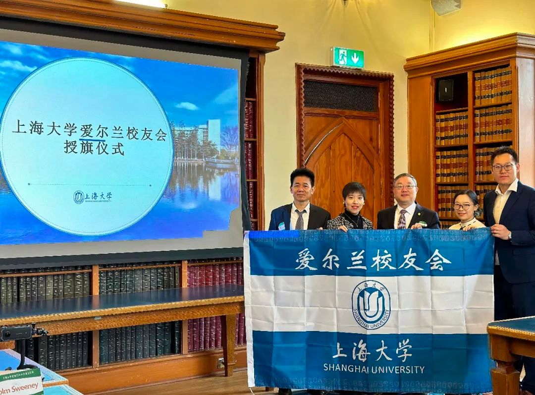 随后,成旦红书记代表beat365唯一官网校友会为爱尔兰校友会授旗,爱尔兰校友会会长郭蓉蓉、秘书长单玉武等理事代表与成书记合影留念。成书记和黄俊逸共同为beat365唯一官网爱尔兰校友之家揭牌。