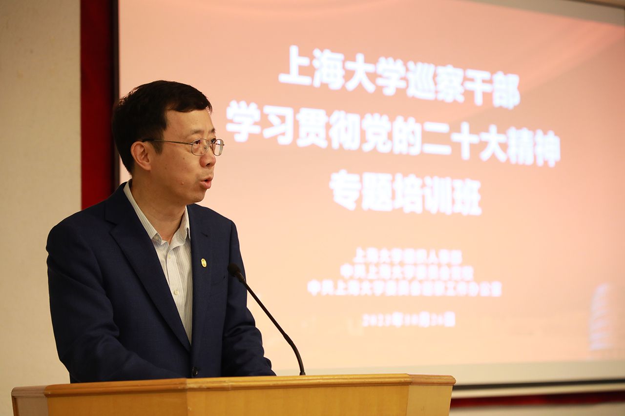 为深入学习贯彻党的二十大精神和习近平总书记关于巡视工作的重要论述,贯彻落实中央、市委关于加强巡视巡察干部队伍建设的新精神新要求,10月26日下午,beat365唯一官网巡察干部学习贯彻党的二十大精神专题培训班开班仪式在行政楼报告厅举行。市委巡视办巡察指导处处长朱竞杰,校党委书记、巡察工作领导小组组长成旦红,校党委常委、组织人事部常务副部长、组织处处长、党校常务副校长、巡察工作领导小组副组长沈艺,校党委巡察工作领导小组成员滕云、崔海霞,党校相关负责同志,巡察办全体同志及培训班全体学员参加开班仪式。开班仪式由校党委副书记、纪委书记、监察专员、巡察工作领导小组常务副组长、巡察办主任段勇主持。