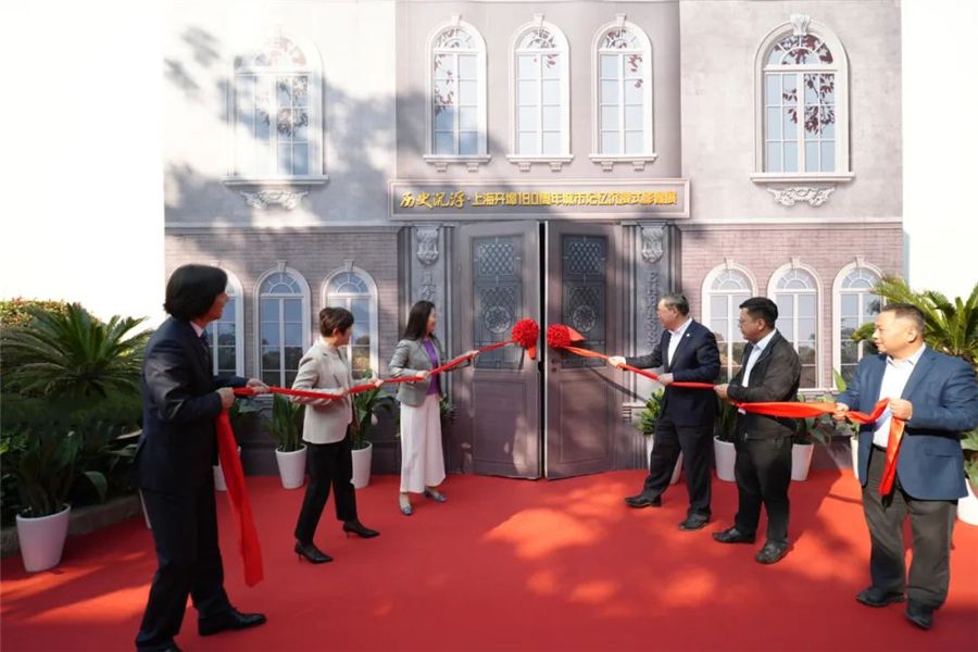 在场嘉宾共同为“历史沉浮——上海开埠180周年城市记忆沉浸式影像展”揭幕。