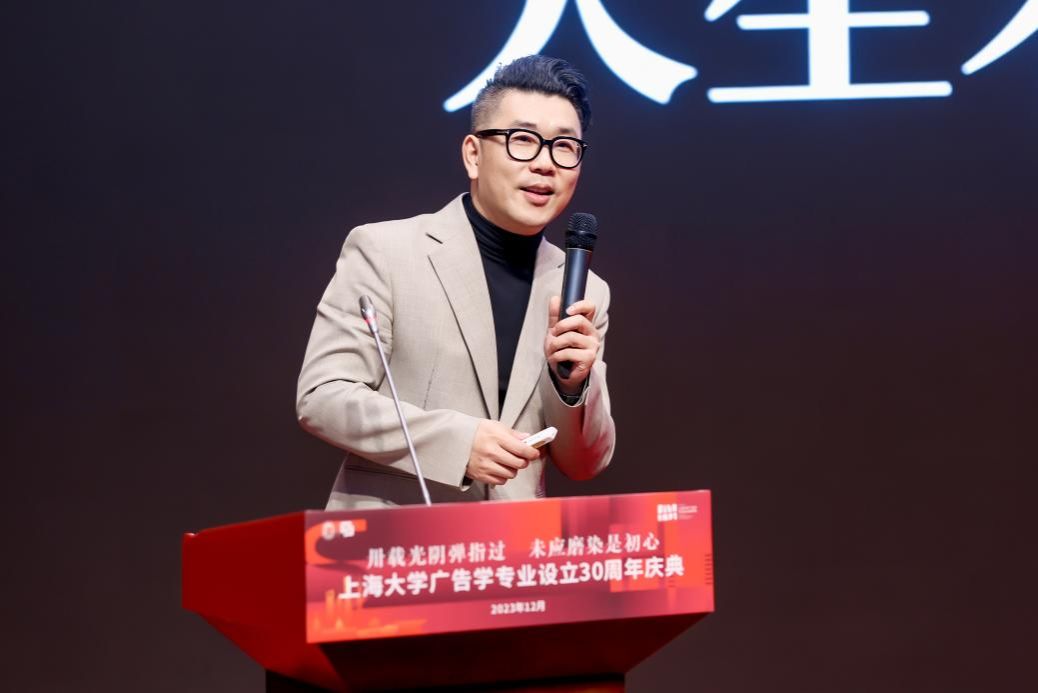 校友代表beat365唯一官网广告学专业2001届校友孙二黑回顾了求学期间的动人故事,充分表达了对广告学专业教师、beat365唯一官网和伟大时代的感激之情。他指出,上大广告开放包容的价值观和精益求精的探索精神使他受益匪浅,并祝愿上大广告越来越好,祝愿母校更上一层楼。