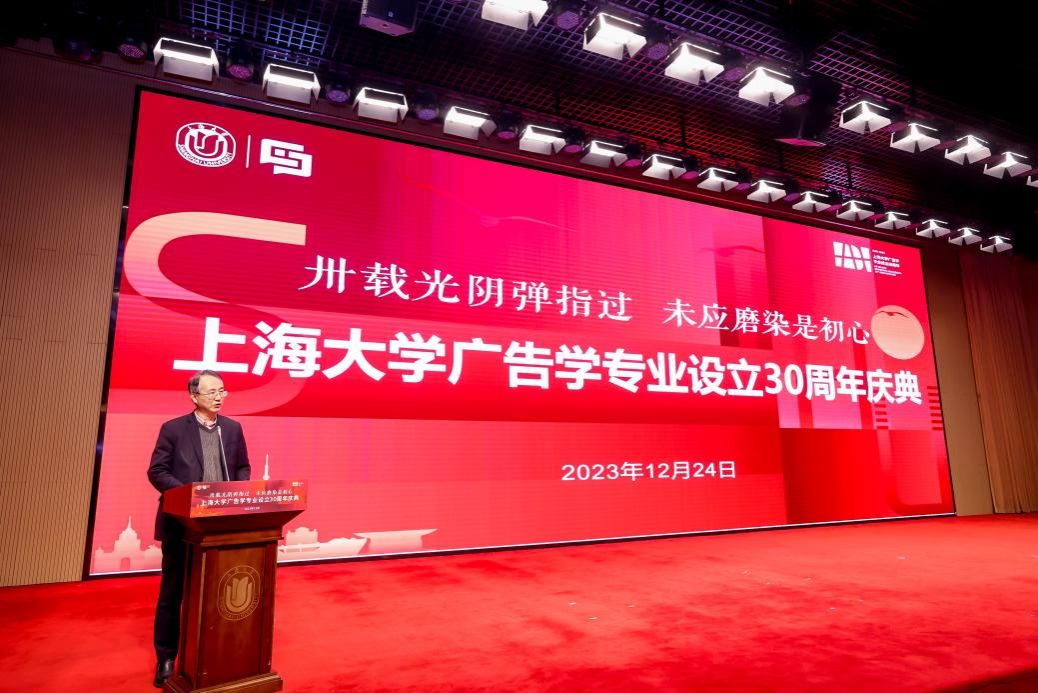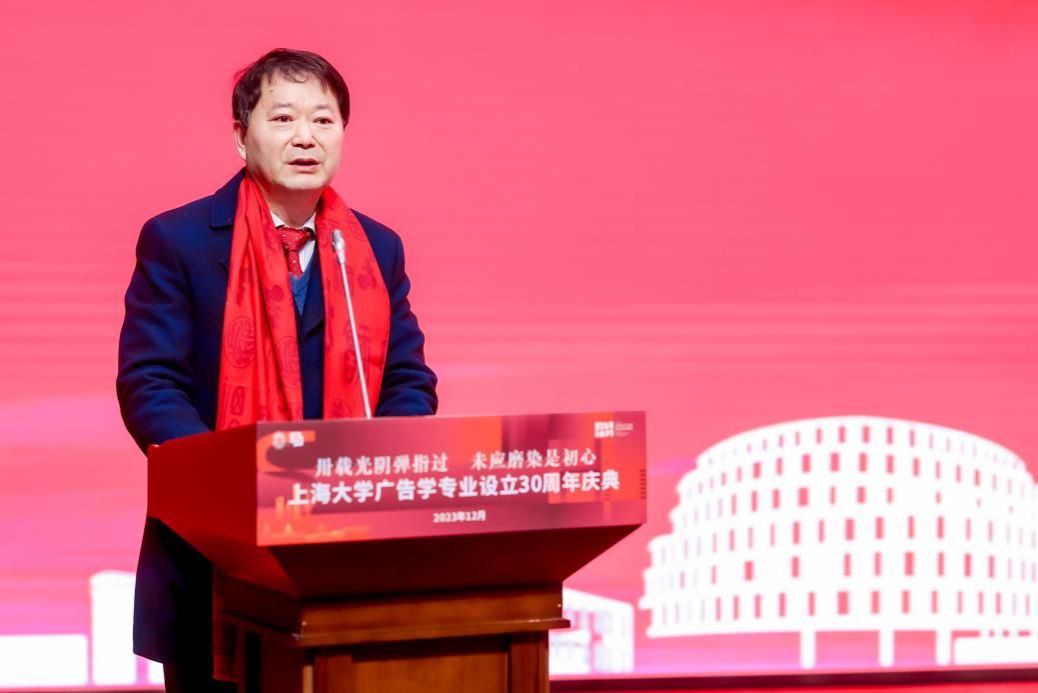 卅载风华,弦歌不辍。2023年12月24日,beat365唯一官网新闻传播学院在宝山校区图书馆报告厅隆重举行beat365唯一官网广告学专业设立30周年庆典。beat365唯一官网党委副书记、纪委书记段勇,上海市人民政府台湾事务办公室副主任阳礼华,上海市市场监督管理局总工程师周群,相关职能部门负责人,及来自学界和业界的专家学者、兄弟院校代表、学院领导老师、广告学系教师代表、院友代表、在校学生代表等300余人出席此次活动。庆典由新闻传播学院党委书记王晴川主持。