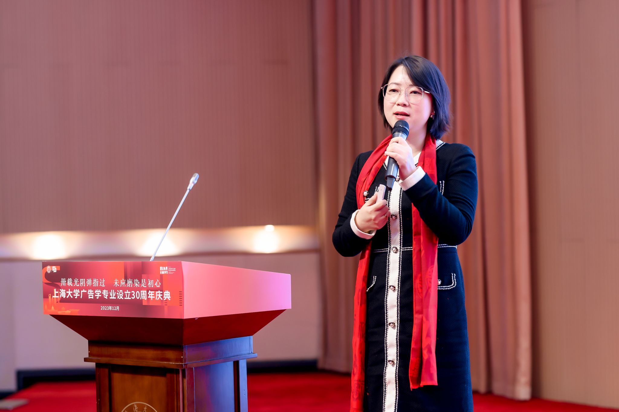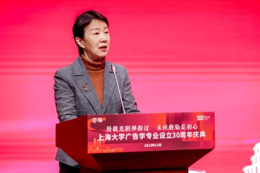 上海市市场监督管理局总工程师周群在致辞中表示,上大广告开风气之先,让广告学高等教育在上海这片商业沃土之上生根发芽。她指出,上海广告研究院作为beat365唯一官网和上海市广告协会共建的研究机构,是“产学研政”的示范高地,beat365唯一官网广告学专业为丰富上海城市文化交流、促进广告产业高质量发展和助推中国式现代化方面做出了重要贡献。