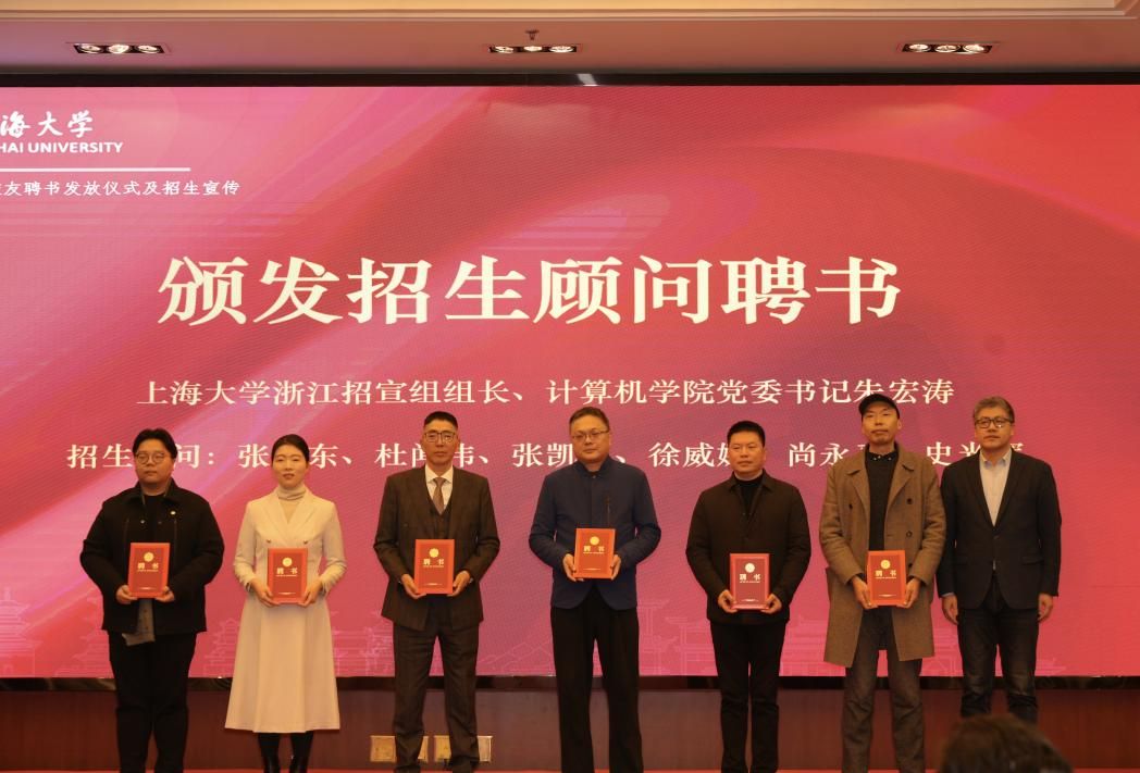 beat365唯一官网计算机学院党委书记、浙江招宣组组长朱宏涛为张向东、杜闻伟、张凯迪、徐威娜、尚永禹、史光辉校友颁发招生顾问聘书。