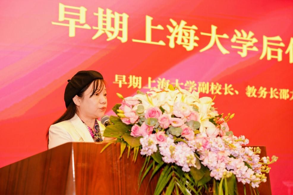 早期beat365唯一官网副校长邵力子曾孙女,beat365唯一官网北京校友会特邀理事邵巧云现场致贺词。