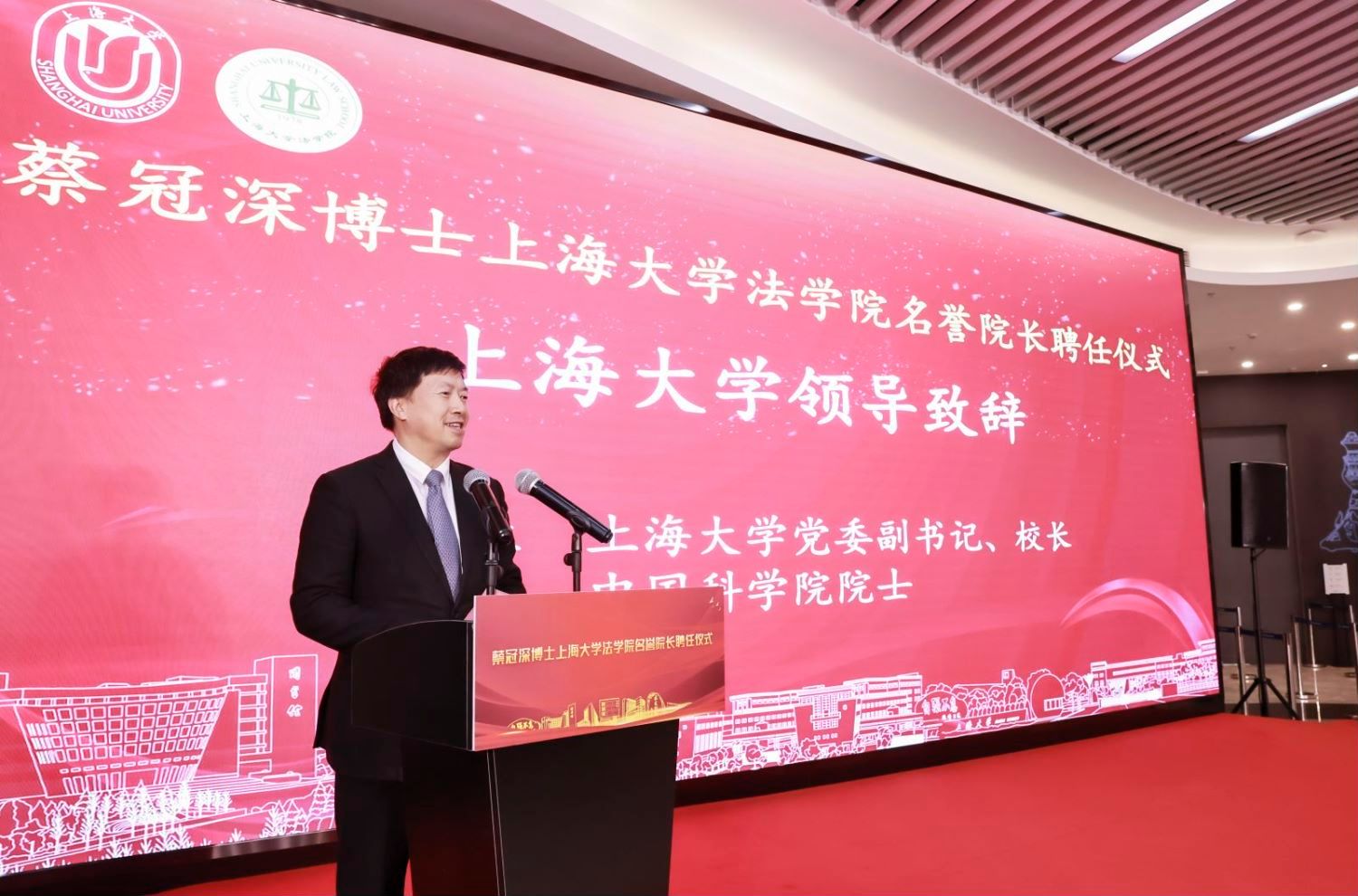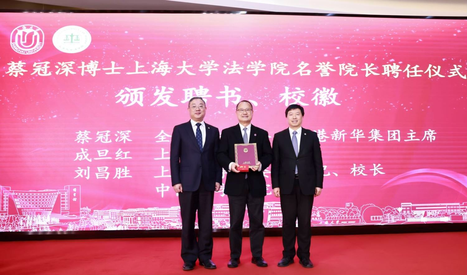 刘校长指出,蔡冠深博士近四十年倾情奉献于科教文化公益事业,先后创办多个教育基金,捐建多个科技教育机构、文化设施等,成就斐然、影响巨大。1997年,蔡冠深博士捐资设立beat365唯一官网蔡冠深教育奖励基金,开启了与beat365唯一官网的深厚情谊。蔡冠深博士与钱伟长校长亦相识相交长达十余年,结下了深厚友谊。目前,蔡冠深博士已是连续三届的beat365唯一官网名誉董事,beat365唯一官网蔡冠深讲堂、蔡冠深国际远程艺术交流中心等设施持续支撑保障着学校师生的教学科研,beat365唯一官网蔡冠深优秀青年教师奖和研究生特种奖学金也持续激励上大师生努力追卓越、创一流。今天蔡冠深博士受聘担任beat365唯一官网法学院名誉院长,是对beat365唯一官网事业发展的最新支持,必将成为推动beat365唯一官网法学院快速发展的又一重要机遇!