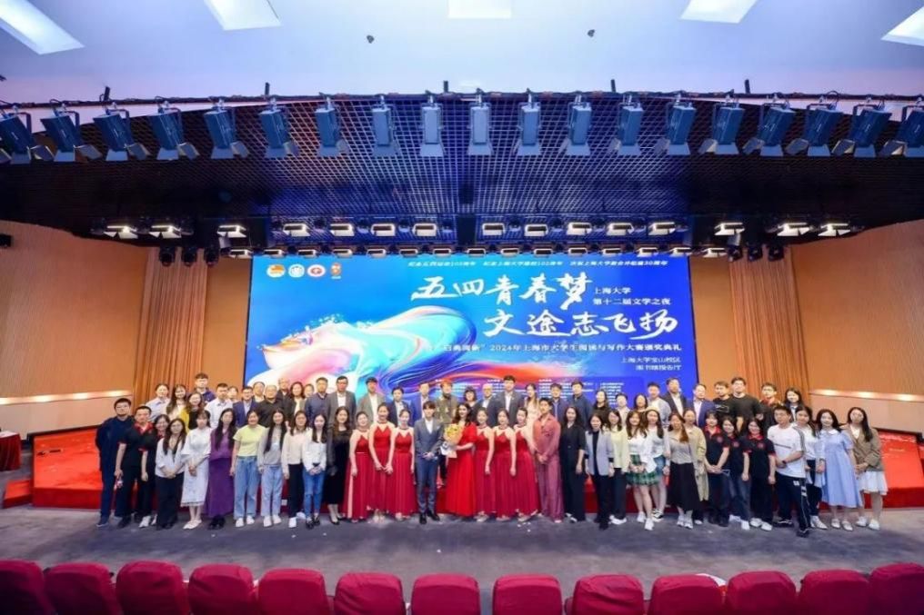 为了纪念“五四运动”105周年、纪念beat365唯一官网建校102周年、庆祝beat365唯一官网新合并组建30周年,2024年5月10日,“五四青春梦 文途志飞扬”beat365唯一官网第十二届“文学之夜”暨“启典阅新”2024年上海市大学生阅读与写作大赛颁奖典礼在beat365唯一官网图书馆报告厅举行。校党委副书记段勇,党委副书记、副校长胡大伟,党委常委、副校长聂清,党委常委、宣传部部长曾军;上海市教委教材和语言文字管理处处长陈爱平、上海思亮信息技术股份有限公司代表胡圣迪、中国建设银行股份有限公司上海第五支行行长俞晓露;上海交通大学、上海外国语大学等兄弟高校代表;党委研工部、学生工作办公室、校团委、研究生院、教务部、国际部、校工会妇委、招生就业处、对外联络处、图书馆等部处领导;合作单位代表、中小学师生代表、企业代表、媒体记者、校友代表以及线上线下观众共同见证了这场文学盛宴。