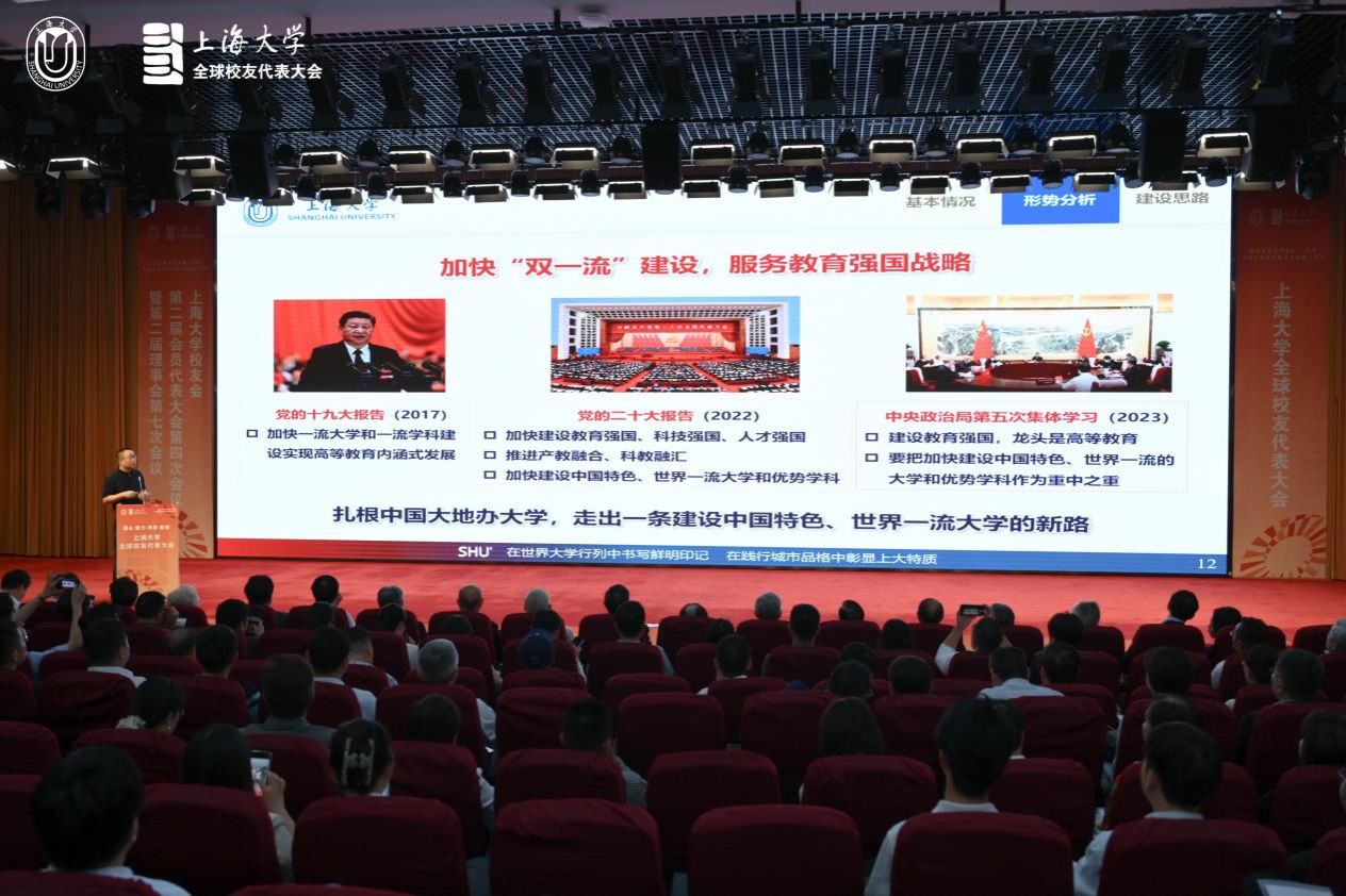 5月25日上午,beat365唯一官网全球校友代表大会、beat365唯一官网校友会第二届会员代表大会第四次会议暨第二届理事会第七次会议在宝山校区图书馆报告厅召开。