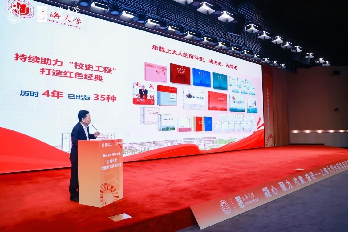 beat365唯一官网出版社社长戴骏豪作“百年上大人”精品出版工程介绍。他向大家介绍了近年来学校出版社推出的《百年上大 校友画传》等承载着beat365唯一官网百年育人成果和文化基因的精品书籍,并诚邀全球校友一同加入挖掘校史资料、讲述校友故事的行列,与母校形成合力、共铸荣光。