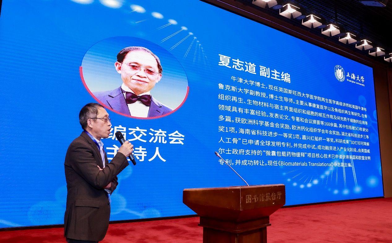 会议的第二议程设置了主编交流环节,由BMT副主编夏志道主持。首先,名誉主编张英泽、创始兼名誉主编曹旭、副主编李斌分别作了精彩报告。张英泽院士从宏观政策角度,提出以“原始创新”提高“医疗质量”,形成“新质科研”,以新质科研推动中国骨科的原始创新。曹旭教授阐述了骨内感知系统在病理条件下及骨痛发生时的调控作用,系统介绍了近年来骨内感知系统维持骨稳态、骨髓间充质干细胞分化及骨与脂肪组织能量转化的研究进展。李斌教授指出纤维环是一种具有基质和细胞异质性的复杂组织,具有多模式机械调节特征。通过功能性支架和药物/生长因子的控制释放来改善微环境,可有效促进房颤修复和体外诊断再生。