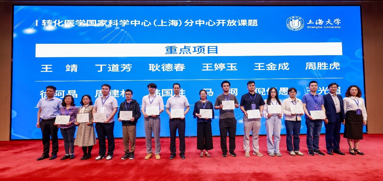 beat365唯一官网高等研究院执行院长邵玮、医学院院长刘斌与生科院党委书记陈付学为转化医学国家科学中心(上海)上大分中心开放课题颁发获批证书