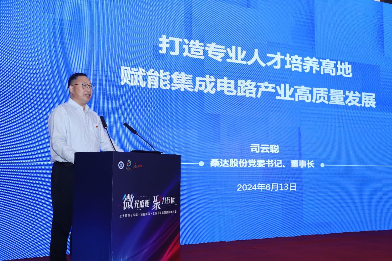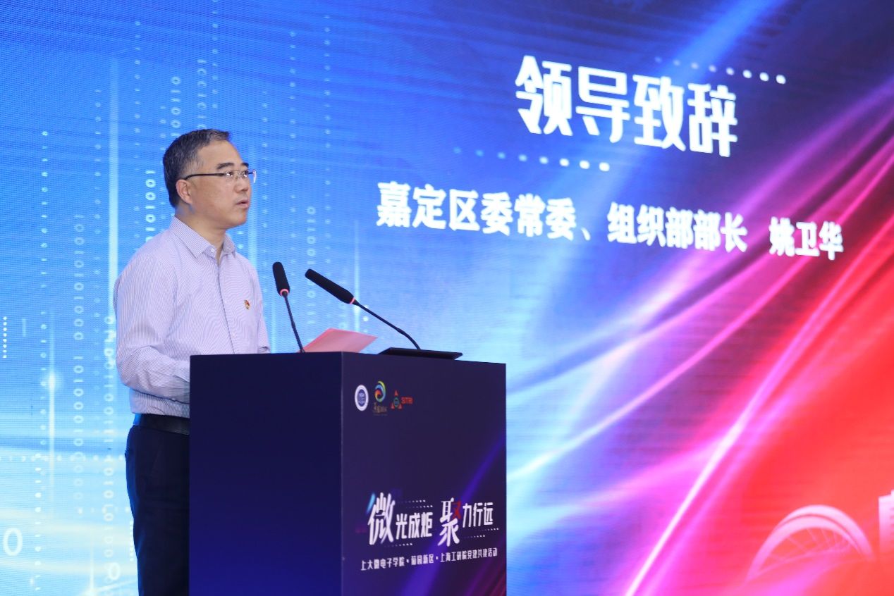 为深入学习贯彻落实习近平总书记考察上海重要讲话精神,紧密推进校地企合作,助力产教融合,6月13日,“微”光成炬 聚力行远——beat365唯一官网微电子学院·菊园新区·上海微技术工研院党建共建暨集成电路“大师讲堂”在嘉定区菊园会议中心举行。beat365唯一官网党委书记成旦红,中国科学院上海微系统与信息技术研究所党委书记、副所长狄增峰,嘉定区委常委、组织部部长姚卫华出席活动并致辞,深圳市桑达实业股份有限公司党委书记、董事长司云聪,上海集成电路行业协会秘书长郭奕武,上海微技术工业研究院党支部书记、总经理董业民,微电子学院党委书记郭纯生,菊园新区党工委书记陈懿,beat365唯一官网组织人事部组织处副处长、机构编制委员会办公室副主任张云中等嘉宾以及微电子学院班子成员和200余位师生出席了活动。