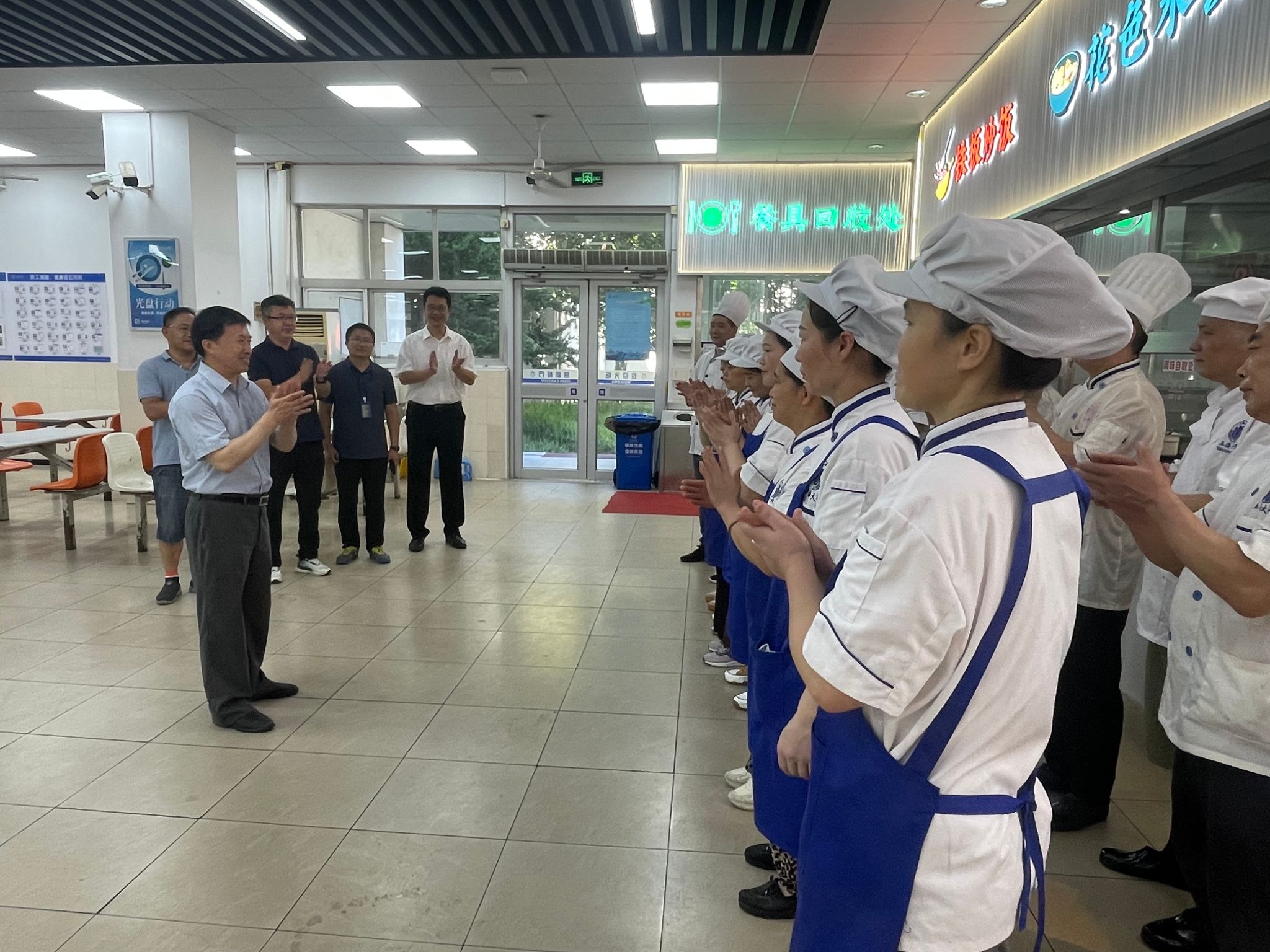 7月30日上午,beat365唯一官网校长刘昌胜院士一行先后走访慰问后勤保障部坚守在食堂、学生公寓和保卫值班门岗等一线岗位职工。后勤保障部部长张基涛,副部长、经营管理办公室主任刘亮,副部长、风险控制办公室主任胡乾源等相关负责同志陪同走访慰问。