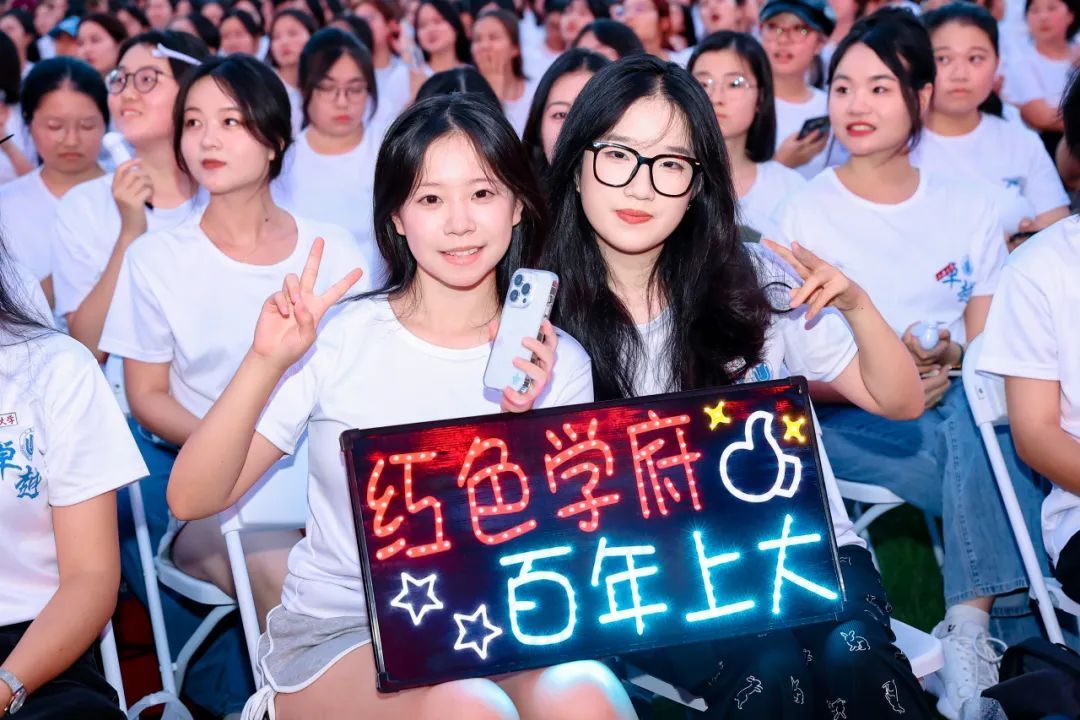随着主持人的声音落下,迎新晚会圆满落幕!人员、节目、道具、话筒、彩排、现场调度……晚会筹备的每一项工作无不彰显了我们上大人的自信自强,通过不同的艺术形式,展现了青年学子的责任与担当,每一个节目,都是对青春最美好的诠释,每一处掌声,都是对青春最热烈的赞美。很庆幸自己可以尽绵薄之力为新生留下这份难忘的独家记忆,与万人一起迎接跨越山海而来的热烈诗篇,用心中的炽热与激情,点燃上大梦!强国梦!
