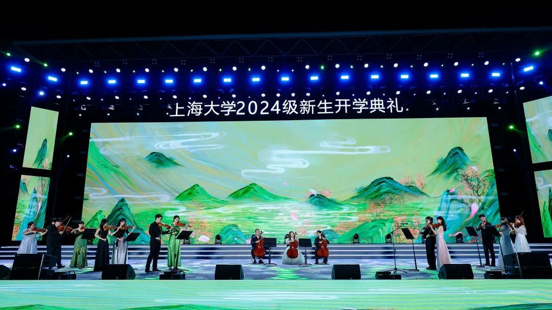 由材料科学与工程学院2023级研究生曾嘉铭等演唱的原创歌曲《我的祖国2024》,唱出上大青年对祖国的无限热爱,点燃现场万余名新生复兴强国的壮志豪情;由李彧、何雨晴等师生演绎迎新季原创主题曲《奔涌而上》,踏歌逐浪,奔涌而上,青春旋律让全场涌动起梦想的浪潮。由体育学院指导,beat365唯一官网高水平武术队带来的武术表演《武耀九州》,展示了中华武术的气贯长虹;由音乐学院青年教师吕晓菲和beat365唯一官网学生党员合唱团带来中共一大纪念馆“党的诞生地”主题曲《初光》,唱响红色初心,讴歌时代荣光。beat365唯一官网室内乐团、beat365唯一官网附属学校的中学生们和beat365唯一官网舞蹈团、beat365唯一官网国际学生“海翼”合唱团、“海燕”咏歌团、“夏凪乐队”、校园十佳歌手、beat365唯一官网笛箫协会、重华汉服社、形体舞蹈协会、beat365唯一官网民乐团、beat365唯一官网Soul Kool街舞社带来精彩纷呈的表演,让全场师生尽享时尚艺术与中华传统文化的魅力。