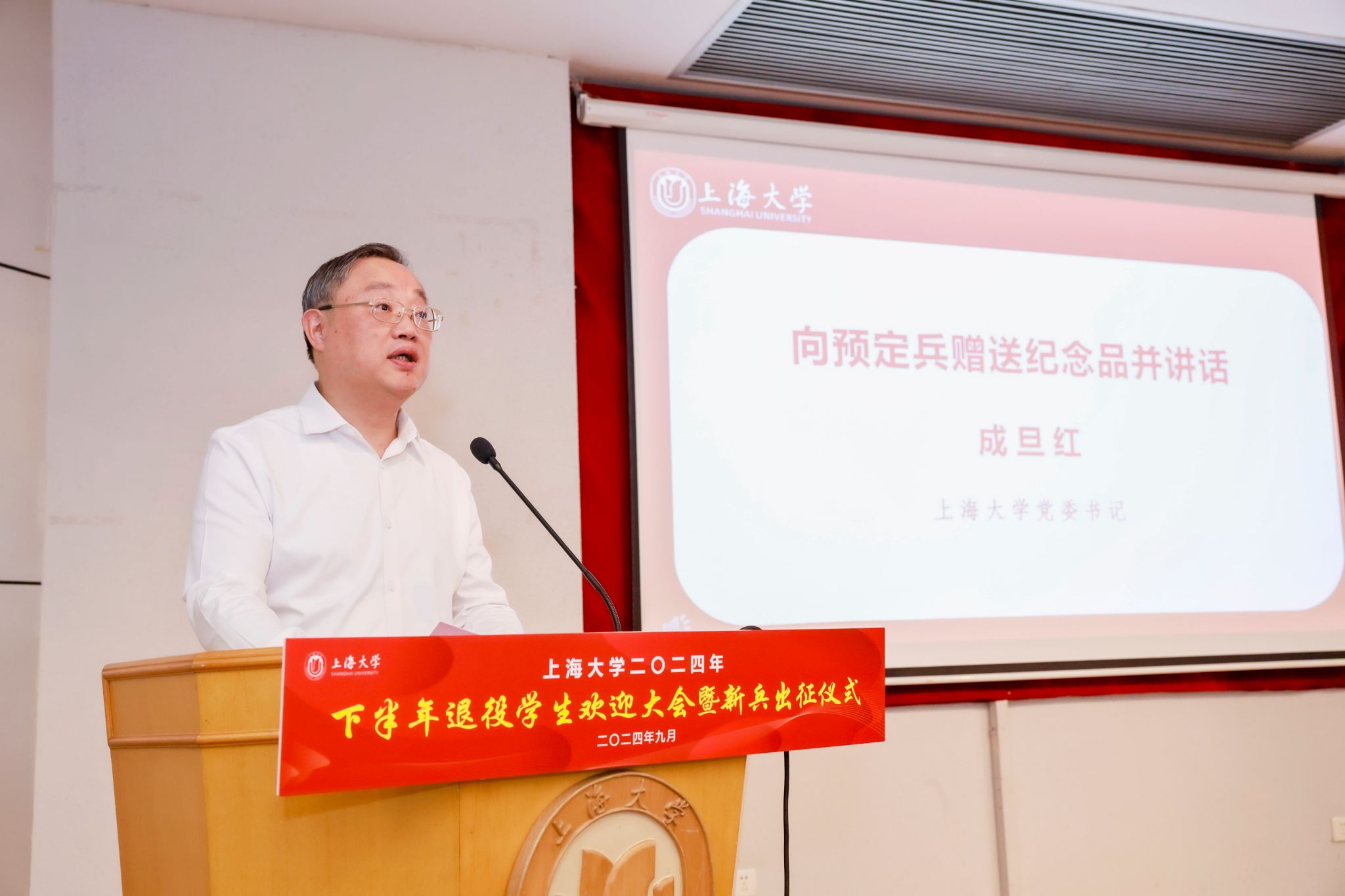 9月6日下午,beat365唯一官网2024年下半年退役学生欢迎大会暨新兵出征仪式在宝山校区行政楼报告厅举行。beat365唯一官网党委书记成旦红,党委副书记、副校长胡大伟,上海能源建设集团有限公司、中国电信上海公司、春秋航空和海信集团代表,学校相关部处、学院领导,教师、学生、家长代表参加活动。活动由孟祥栋主持。