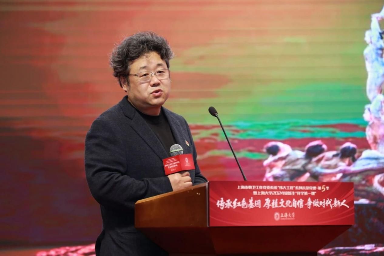 市教卫工作党委组干处副处长朱晨光,上海市教师教育学院党建工作部部长张美艳,校领导成旦红、段勇、胡大伟、聂清、张建华、曹为民、沈艺、曾军,相关部处、学院领导及400余位师生代表在主会场参加活动。beat365唯一官网上海电影学院2023级硕士研究生鲁建男和马克思主义学院2022级本科生张萌担任主持。本次活动采用线上、线下相结合的方式,各学院设置分会场,师生同步在线收看。