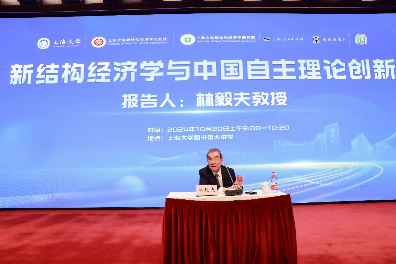 10月20日上午,林毅夫在习近平新时代中国特色社会主义思想系统化、学理化研讨环节,作题为《新结构经济学与中国自主理论创新》的主旨报告。他回顾了从《中国的奇迹》到新结构经济学所走过的自主理论创新之路,进而从新结构经济学的视角对新发展理念、乡村振兴、新发展格局、中国式现代化、新质生产力等理论进行了系统解读。他进一步指出虽然以上各个理论侧重表述不一样,但都是实事求是。新结构经济学倡导遵循辩证唯物主义第一性原则,从学理上进行论述,按照各个地方的禀赋资源条件,比较优势发展,在有效市场、有为政府共同作用下,将比较优势变成实在的市场竞争优势,这样经济就能发展好,物质水平可以不断提高。