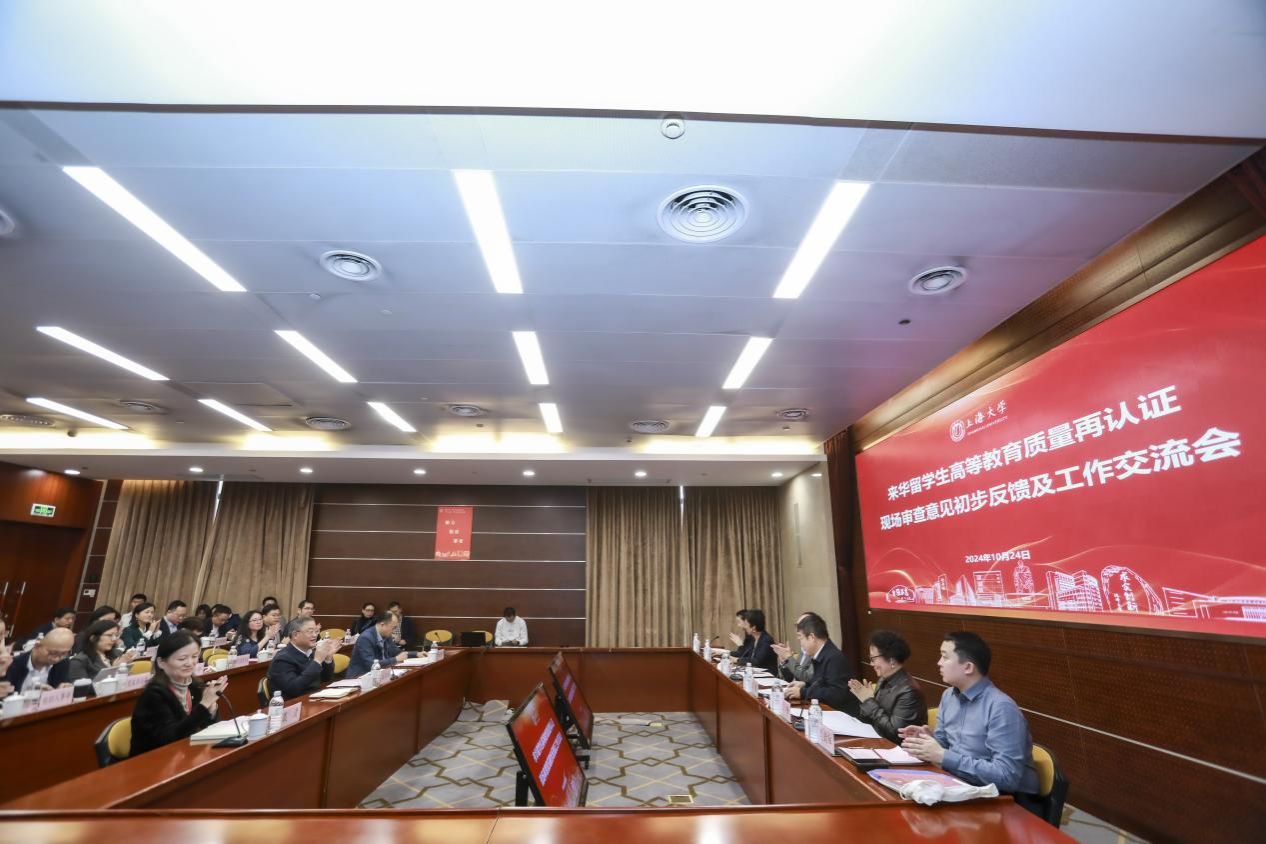 24日下午,召开了现场审查意见初步反馈及工作交流会。认证专家充分肯定了学校来华留学生教育工作所取得的成绩,认为学校在留学生招生、教学、管理和风险防控等方面的工作位居全国高校的前列。同时,认证专家也从品牌项目打造、生源质量优化、体制机制落实、校园国际化氛围建设、来华留学生管理人员培训等方面提出改进意见。