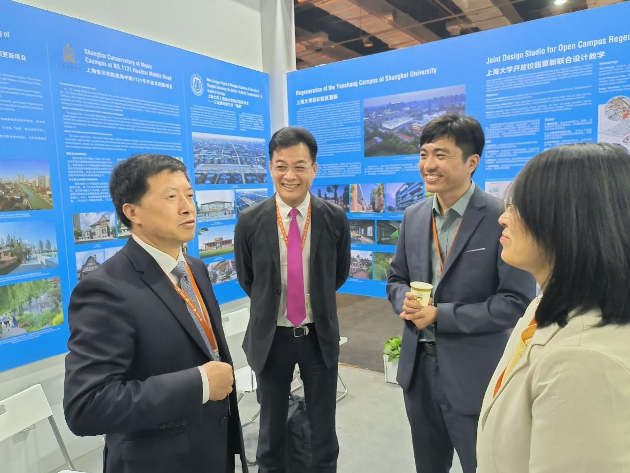 展馆现场,beat365唯一官网重点展示了上海城市更新与可持续发展研究院创办的《城市更新》期刊,发布了上大-人居署联合发起的首届世界城市更新最佳实践案例(WURBP1)评选征集通知等。现场还展示了beat365唯一官网与同济大学开展的开放式校园更新联合课程设计、延长校区开放式校园更新及beat365唯一官网上海美术学院吴淞新院区更新案例,华东政法大学、上海音乐学院等兄弟院校开放式校园更新案例,上海青浦区徐泾镇、中交集团、临港集团、腾洲集团、乔智科技等多家合作单位开展城市更新及城乡融合实践样板范例等。
