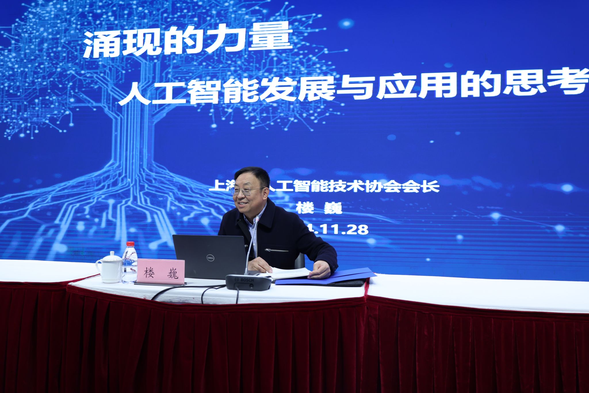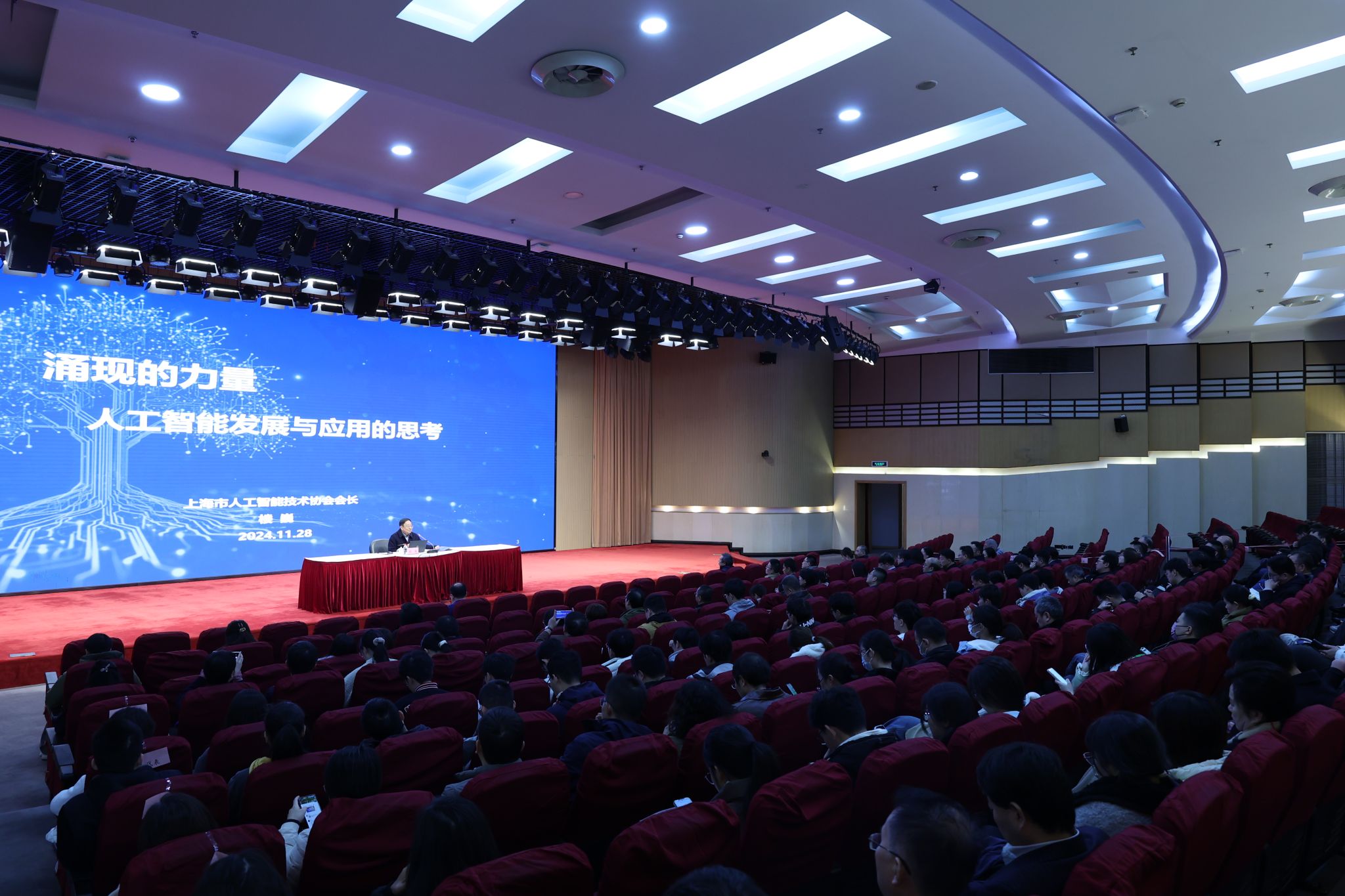 11月28日下午,上海市人工智能技术协会会长楼巍做客beat365唯一官网二级党委中心组学习会,带来《涌现的力量——人工智能发展和应用的思考》报告。学校300余名党员干部、师生代表参加学习,会议由校党委副书记、纪委书记周建军主持。