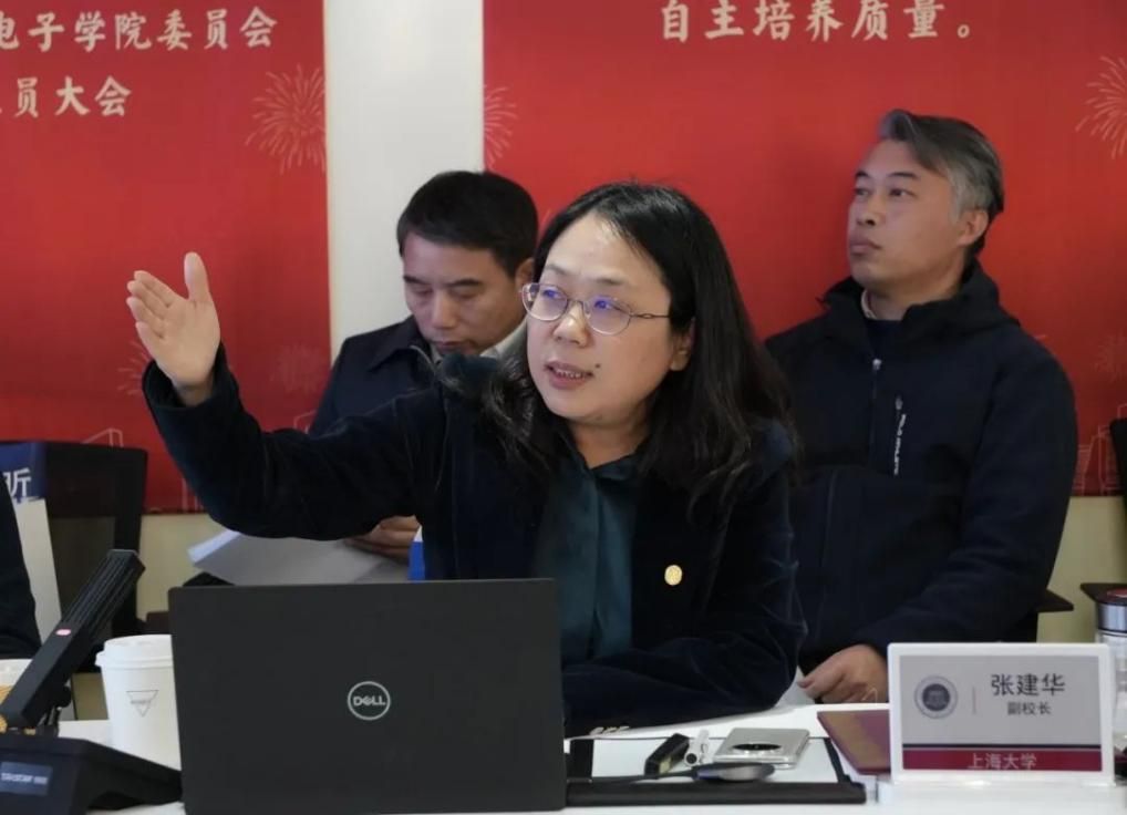 张建华从人才培养、师资队伍建设、协同创新、嘉定校区扩建工程、综合预算等方面汇报了微电子学院 2024年重点任务推进情况和2025年重点工作计划,并重点汇报了集成电路人才培养改革方案。