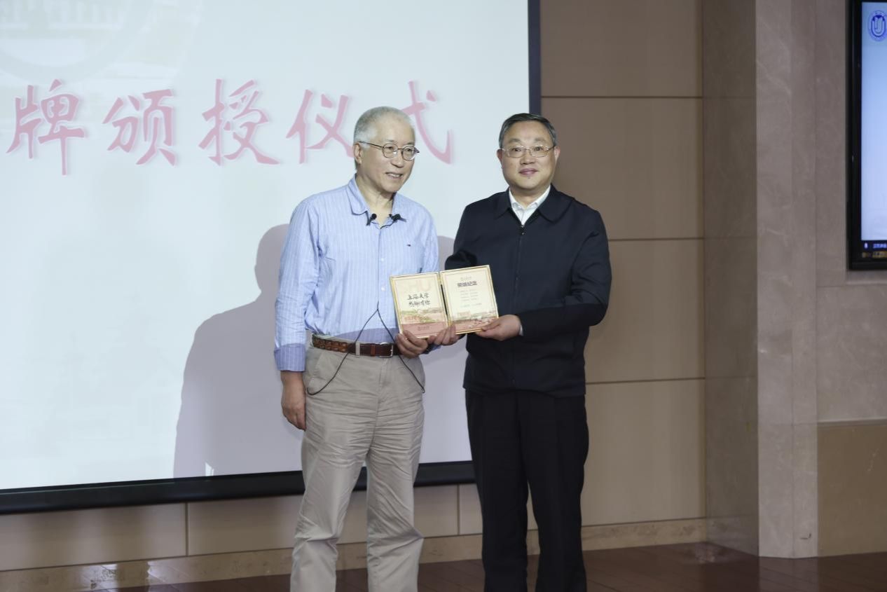 图4 成旦红书记为王晓明教授颁授荣休纪念牌