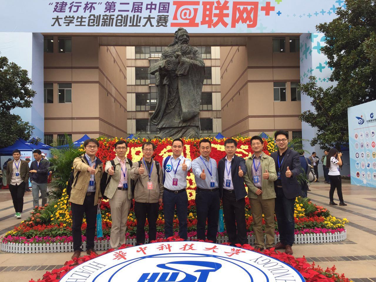 第二届中国“互联网+”大学生创新创业大赛由教育部、国家发展和改革委员会、工业和信息化部、共青团中央和湖北省人民政府等共同主办,共有2110所高校、55万参赛者、12万个项目参与了本次大赛,经过初赛和复赛的激烈争夺,120支团队汇聚华中科技大学,最终30个团队获得金奖,90个团队获得银奖,480个团队获得铜奖。