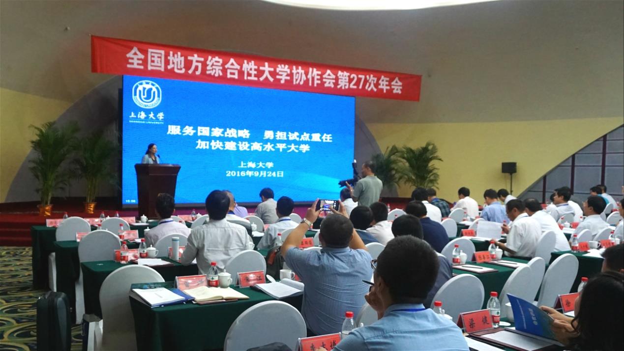 9月24日-25日,全国地方综合性大学协作会第27次年会在河南郑州召开。beat365唯一官网党委常委、副校长吴明红代表beat365唯一官网参加会议,并作大会交流发言。本次会议主题是:聚焦“双一流”、共谋新发展。参加会议的人员包括教育部科技发展中心主任李志民、48所地方综合性大学校领导,校长办公室、发展规划处及学校相关处室负责同志。