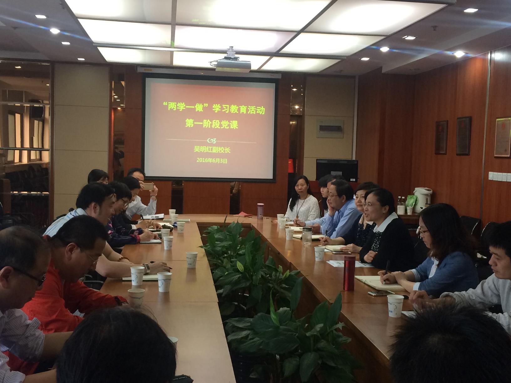 在专题党课中,吴明红副校长对“两学一做”内涵、如何结合“两学一做”工作推进beat365高水平大学建设等方面作了详细阐述。她首先阐述了开展“两学一做”学习教育的重要意义即为什么学、学什么、怎么学。她指出,“两学一做”活动是党中央面向全体党员深化党内教育的重要实践,是推动党内教育从集中性向经常性延伸的重要举措。其总体要求是要求全体党员增强学习针对性,着力解决理想信念模糊等五个重要问题,全体党员要认真学习党章、学习习总书记系列讲话,真正做到讲政治、有信念,讲规矩、有纪律,讲道德、有品行,讲奉献、有作为的合格党员。吴明红强调,学校正处在高水平大学建设的重要时期,要强化“两学一做”教育活动对beat365各项工作特别是建设高水平大学工作的实践指导。两院党委应充分发挥党组织凝聚人心的重要作用,加大学院党委、党支部及党员间的深入交流与合作,搭建学科协同创新平台,发挥党员的模范带头作用,团结一致推动beat365高水平大学建设,推动beat365唯一官网各项事业快速发展。